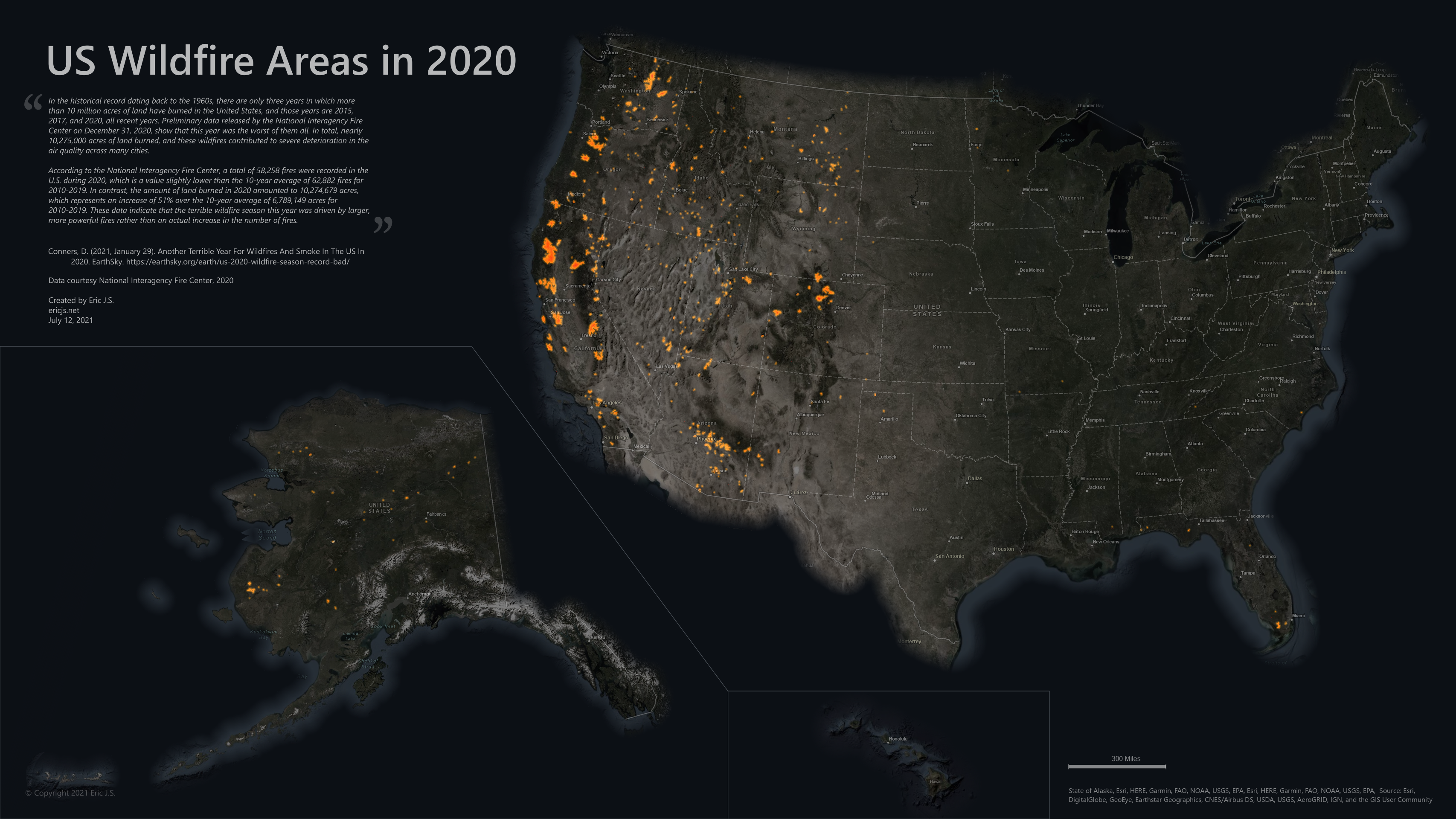 Deanna Conners wrote an article summarizing the data for 2020’s wildfires here: